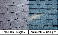 - Laminated Shingles -- these special shingles contain more than one layer of tabs to create extra thickness. They are also referred to as three-dimensional or architectural shingles because they create visual depth on a roof and impart a custom look. Laminated shingles continue to be a favorite among builders, roofing contractors and homebuyers.